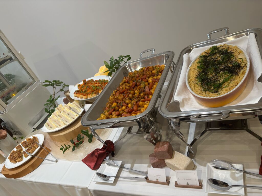 しかもスイーツとケンカしないサンドイッチやクリームパスタなどがあって、ちょうどよい塩味で甘くなったお口がリセットされてまたスイーツを取りに行く、というなんとも幸せな永久機関の爆誕!!